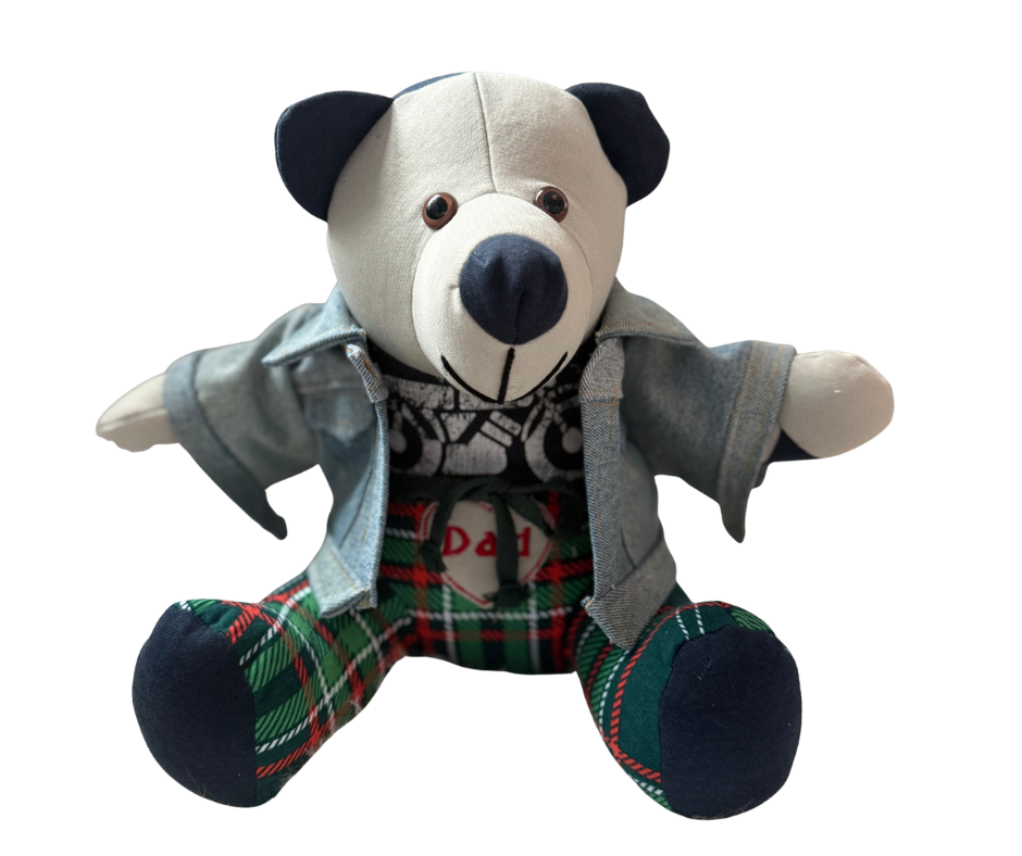Granddad Memory Bear made out of clothing – created from a special gentleman’s clothing to remember him by . A Granddad Memory Bear made out of clothing can have up to 30 characters of personalised embroidery added . Memory keepsake animals and bears made out of clothing are a fabulous way to display your precious memories with that special man in your life when you haven’t got many items of clothing available to use, or you simply want a beautiful and unique display item on a shelf in your home.